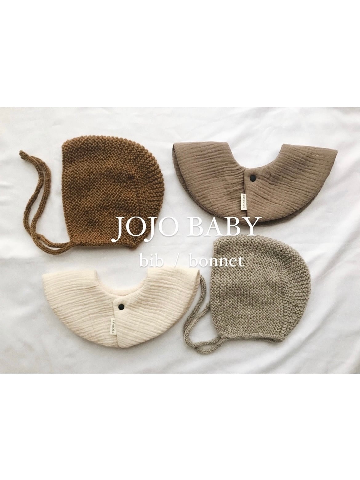 ◯name刺繍 ( 刺繍の色:beige/black どちらかお選び下さい) ◯color mocha beige ivory ◯素材 ダブルガーゼ(表裏) ドミット芯 スナップボタン2つ ◯size 首まわり:約28cm